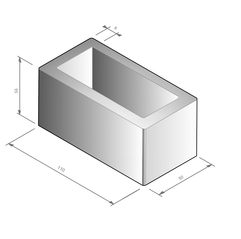 Deze bloembak is uitgevoerd met een zorgvuldig opgebouwde wanddikte die aan de binnenzijde verloopt van 8 naar 10 cm, wat zorgt voor extra stevigheid en een duurzame uitstraling. De bodem heeft een robuuste dikte van 10 cm en draagt bij aan de stabiliteit en lange levensduur van de bloembak.