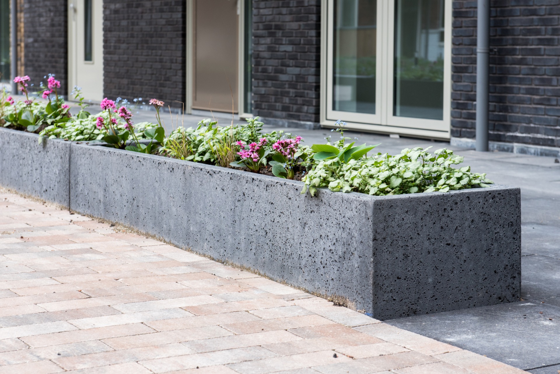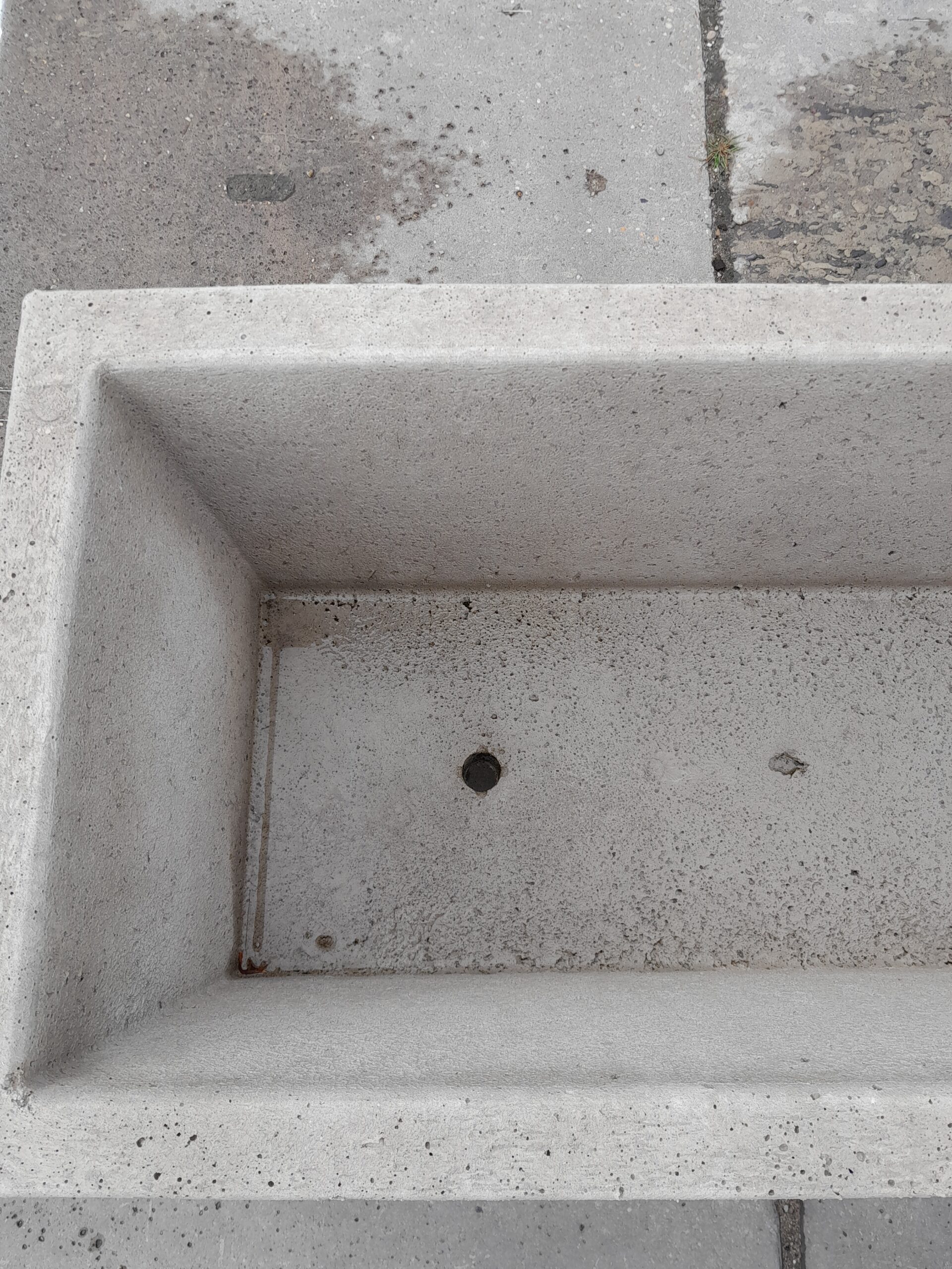 Voorzien van een afwateringsbuis zodat een teveel aan regenwater wordt afgevoerd. Een laagje grind dat de afwateringsbuis bedekt, eventueel aangevuld met een worteldoek, voorkomt verstopping van het buisje en dus scheurvorming bij temperaturen onder nul. Onze bloembakken dienen altijd op een vlakke ondergrond te worden geplaatst met een gelijkmatige ondersteuning onder de volledige bodem.