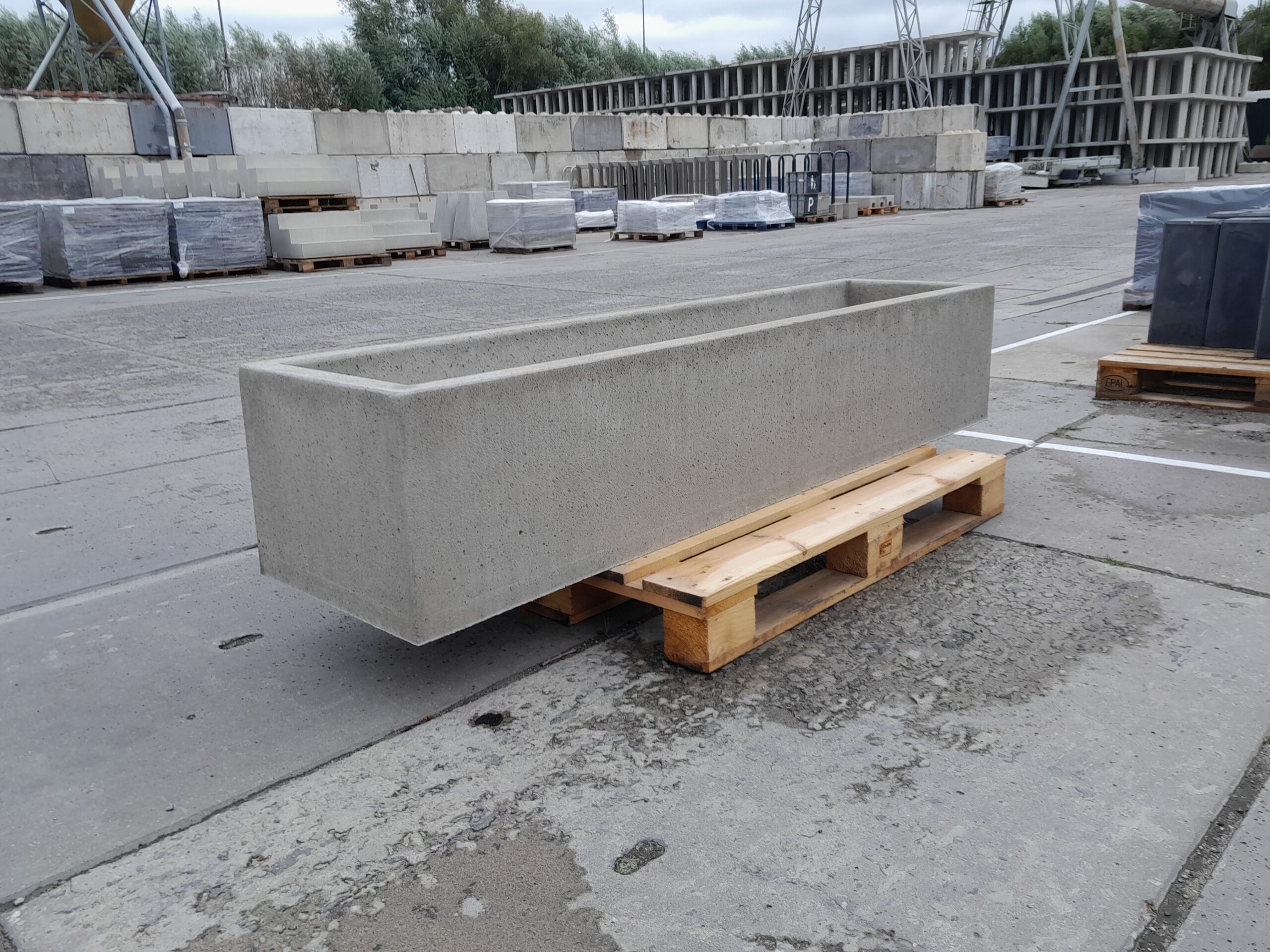 Deze betonnen bloembak is 200x50x40 cm maar boon beton levert betonnen bloembakken in verschillende maten. Leverbaar in zowel grijs als antraciet.