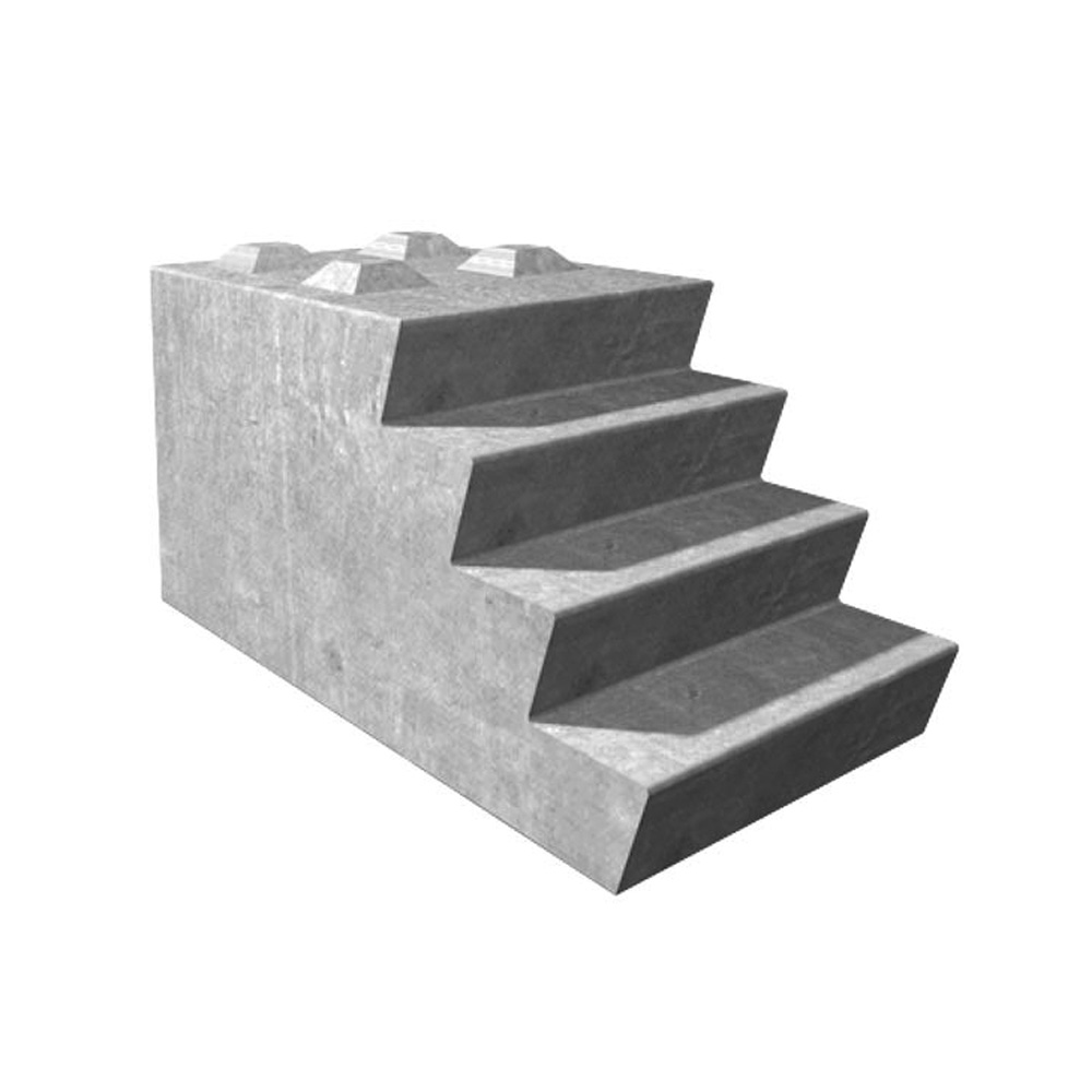 Deze betonnen trap met 4 treden van 20 cm hoogte biedt flexibele bouwmogelijkheden.